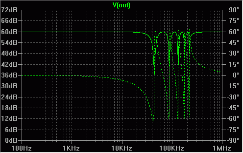 sampling frequency multiples. Amplitude and phase response look like this.