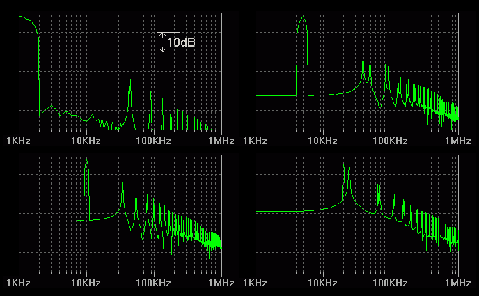 In the FFT graphs without scaling on the Y axis one field should be considered as 10dB tall.