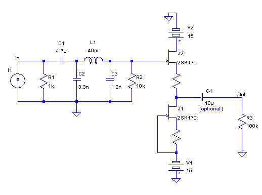 This schematic assumes a buffer at its output (scroll down, please), and hence the coupling cap is included. (However, I couldn't include a buffer in the simulation with a wave file as a current source. Simulation with wav file threats wav file only as a full level signal, which for the current source means 1A.)